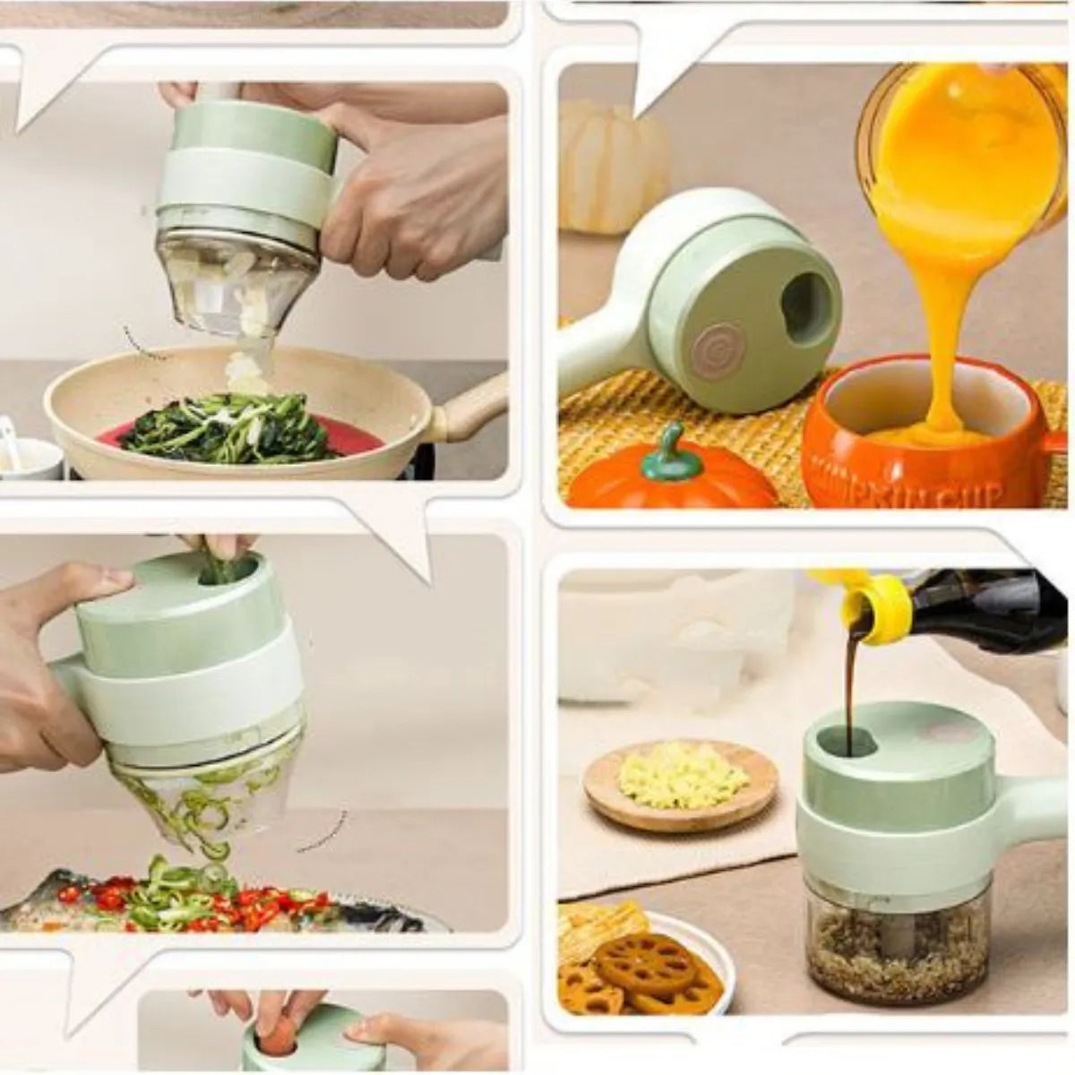 ¡Revoluciona tu cocina! Corta, pica y tritura al instante con el Cortador Eléctrico 4 en 1.👩🏻🍳