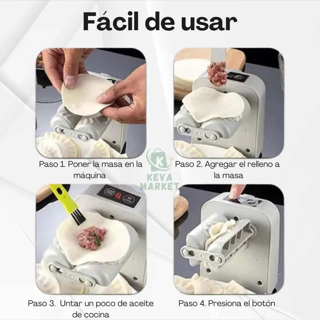 3️⃣ Súper intuitiva: Coloca masa, relleno, presiona - listo. No requiere experiencia.